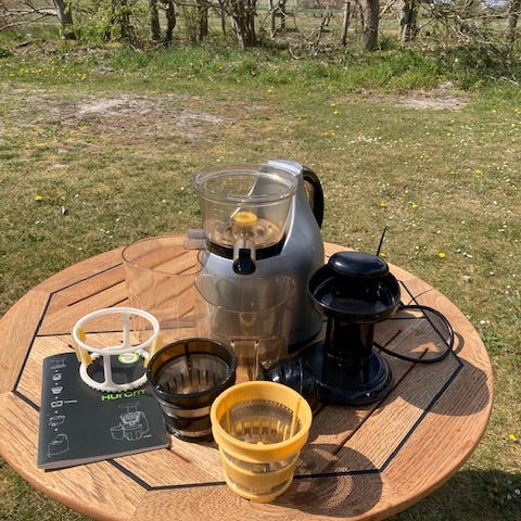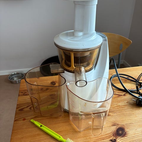 Den har lidt misfarvning fordi jeg primært har brugt den til at presse mine egne ingefær/gurkemeje isterninger. Det kan anbefales.