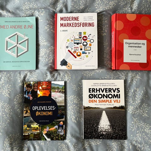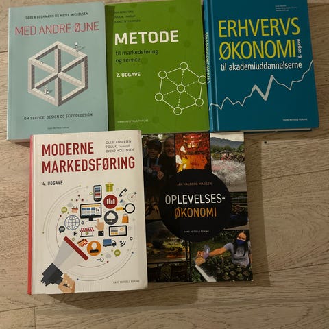 Lidt forskellige litteraturbøger til salg, brugt ved uddannelsen Leisure Management, (i dag hedder uddannelsen Event management og økonomi).
