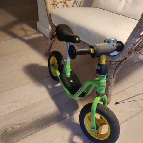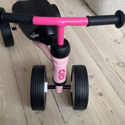 Puky Løbecykel med 10" hjul, rosa farve og brun saddel. Designet til børn og egnet til balance- og motoriktræning.