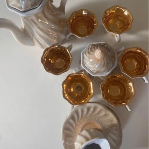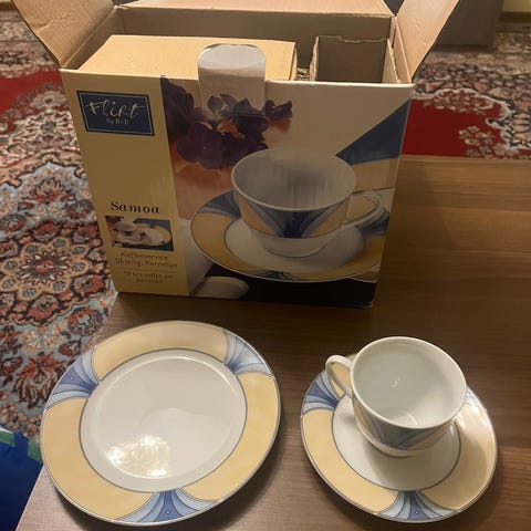 Vintage Picco porcelæn kaffesæt til to med platinum dekoration