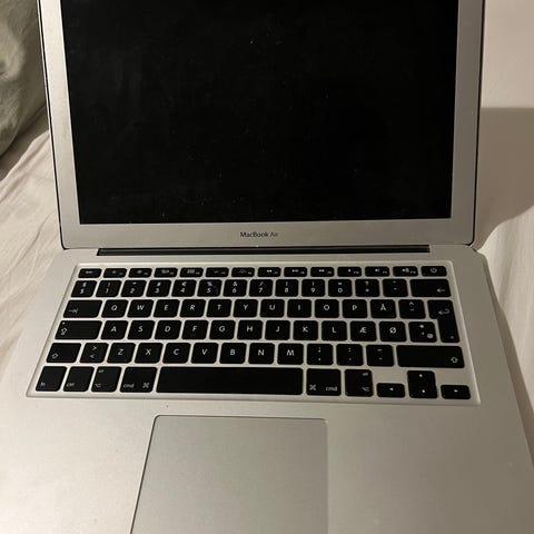 Jeg sælger min MacBook Air 13" (2019). Denne computer er stadig i meget god stand. Gummiet på højre side af skærmen er ved at løsne sig lidt. Tastaturet er engelsk Qwerty og ikke standard nordisk.