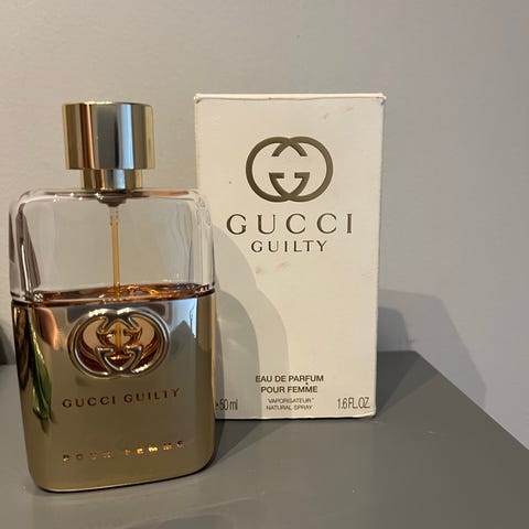 Gucci Guilty Eau de Parfum Intense er en parfume til kvinder. Produktet kommer i en emballage, der angiver indholdsstoffer og oprindelsesland (Spanien).