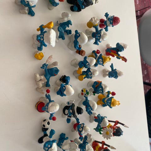 36 forskellige Smølfer og legehus i plast. Et par af de samme, men 30+ forskellige og en ræv 😉 Sættet indeholder også en bil med træk-tilbage funktion samt Smølfines hus formet som en stor svamp. Velegnet til samling eller leg. Sælges gerne samlet