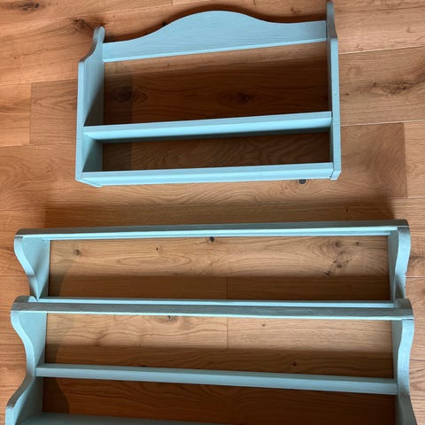 Med forkromede hyldeknægte. Længde 80 cm, dybde 20 cm, (hylde tykkelse 1,6 cm) Afstand mellem hylder 17 cm. Afhentning 9220 Aalborg. Kun betaling via mobilepay. Fragt på købers ansvar.