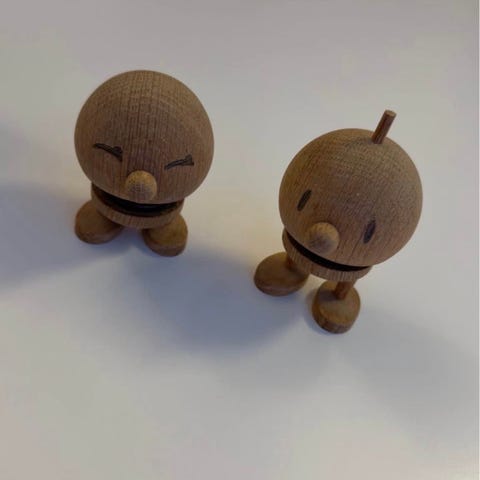 Skandinavisk Hemslojd træfigur, udformet som en person med filtbeklædning og kagerulle. Figuren er håndlavet i træ og filt, og viser detaljer som tøj og tilbehør. Velegnet som dekorationsobjekt.