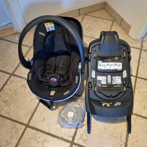 BeSafe Autostol. Autostolen er designet til børn og har sikkerhedsfunktioner til brug i bil. Stolen har justerbare seler og en base til montering i bilen. Inklusiv isobase