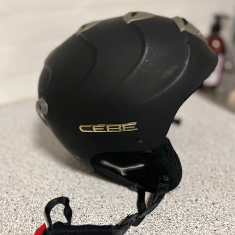 CEBE skihjelm str small 56 i brun farve + UVEX skibriller med orangetonede linser og sort stel. Hjelmen er designet til beskyttelse ved vintersport.