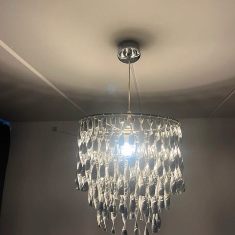 2 stk IKEA Asmussen loftlampe fremstillet i træ. Lampen har et unikt design med buede træelementer, der danner lampeskærmen. Velegnet til ophæng i rum, hvor der ønskes et naturligt og dekorativt lys.