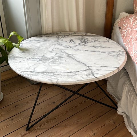 Sofabord marmor med pulverlakeret ben 1x1 m købt i centralmøbler
