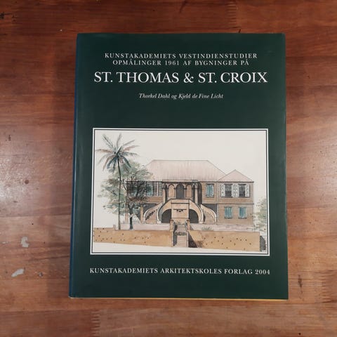 Surveys in 1961 on St. Thomas & St. Croix, Thorkel Dahl and Kjeld de fine Licht, emne: arkitektur, Udgivet af Royal Danish Academy of fine arts - School of Architecture Publishers 2004, 1. udgaven, Gult hellærredsbind incl. smudsbind, stort format, fin og velholdt stand. Indeholder mange billeder. 299 sider.