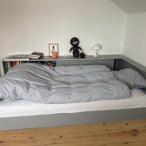 Sengen er i massiv fyrretræ fra Sverige. Trætykkelsen måler 25 mm og sengegavlen er 60 cm høj og fodenden 45 cm høj.