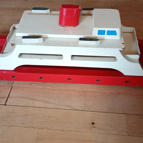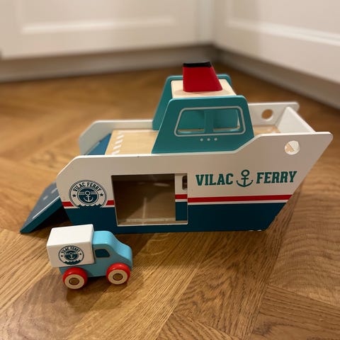 Bilfærge fra Siku. Købt brugt. Passer til legetøjsbiler 1:50. Flagstangen er blevet væk. Følger med, hvis vi finder den. Ramperne er lidt slidte men virker. Dørene virker perfekt.