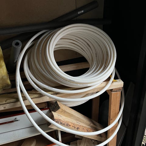 Wavin gulvvarmeslange til Spånsporplader med indvendig ildspærre der er 93 meter tilbage på slangen