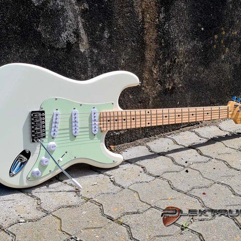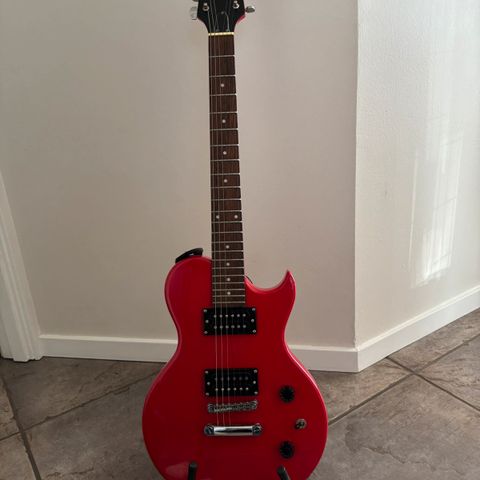 Min Washburn X20b black fremstår utrolig flot og alt virker som det skal. Både krop og hals er lavet af ahorn og gribebrættet er af rosentræ. Guitaren har en floating tremolo arm. Jeg er eneste ejer og den er kun blevet brugt lidt herhjemme til øvning og sjov. Ingen bytte eller forsendelse.
