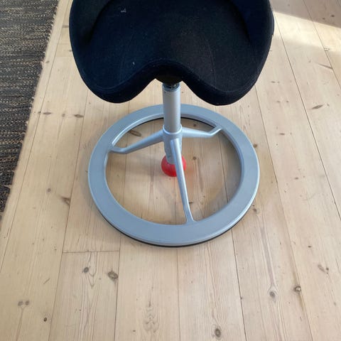 Backapp ergonomisk stol med sort polstring og rund fodring. Designet til at fremme korrekt siddestilling og komfort.