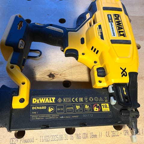 DeWalt DCN660NT XR sømpistol med 18V lithium ion batteri. Kan anvendes til søm i størrelserne 32-63 mm med en diameter på 1,6 mm. Sømvinkel på 20 grader.