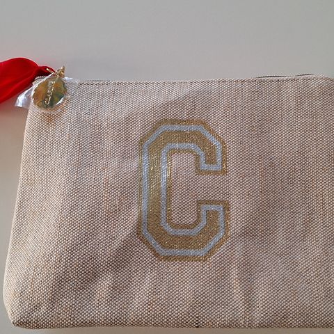 Andet, Kosmetiktaske , Clarins, Meget fin og blød kosmetiktaske fra Clarins sælges med 2 prøver på 5 og 10 ml + 2 pins.