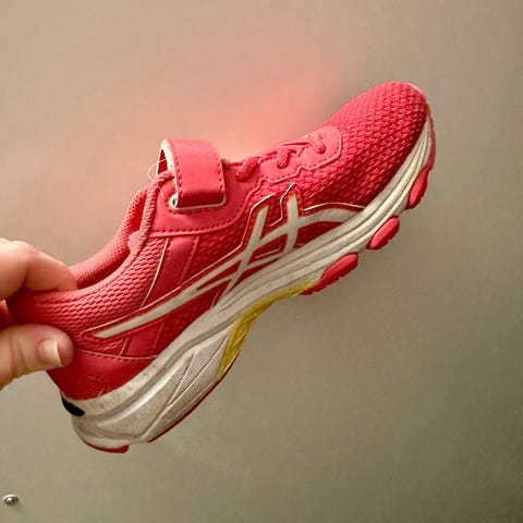 Asics børnesko/løbesko til pige i størrelse 33,5. Mørkeblå. velcrolukning elastiksnørebånd.