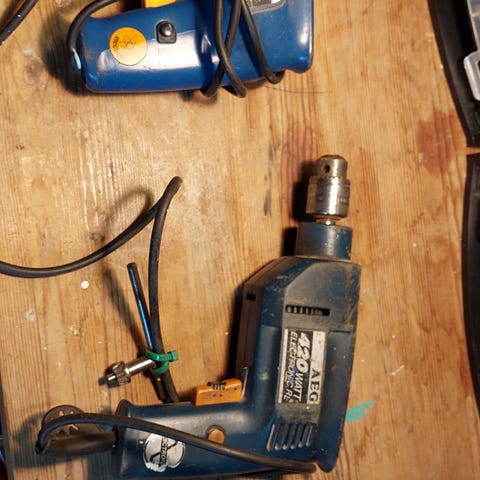 Elektrisk boremaskine med ledning i orange og sort farve. Maskinen har et ergonomisk design med et håndtag til bedre greb. Velegnet til boring i forskellige materialer. Strømforsyning via kabel. Virker