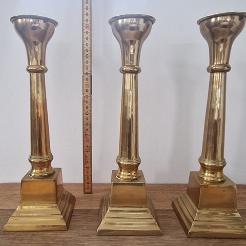De er ca. 31 cm. høje, foden og kransen er henholdsvis ca. 11 cm. og ca. 8,5 cm. i diameter,