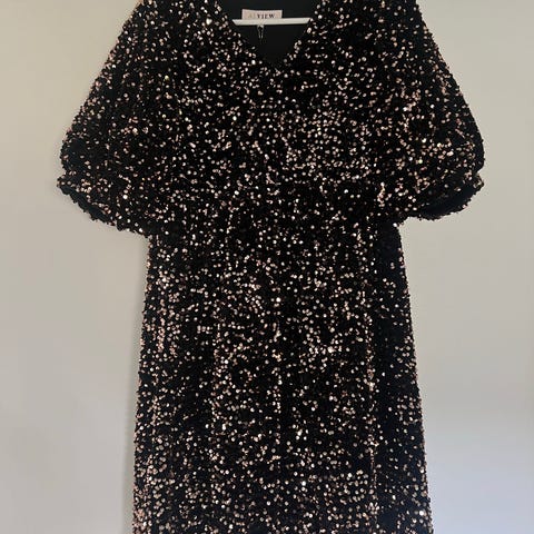 A-View paillet kjole i kobber/sort. Modellen er Silla. Størrelse 34. Kjolen er kun brugt to gange, og er i super stand.