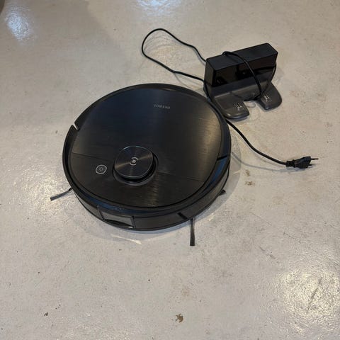 Ecovacs Deebot X1 plus robotstøvsuger med integreret rengøringsstation. Enheden er designet til automatiseret gulvrengøring og inkluderer funktioner til både støvsugning og gulvvask. Robotstøvsugeren har en kompakt og moderne udformning, som passer til forskellige boligmiljøer. Sælges med nye børster, 1 filter, 4 poser og 4 brugte men stadig fine mopper