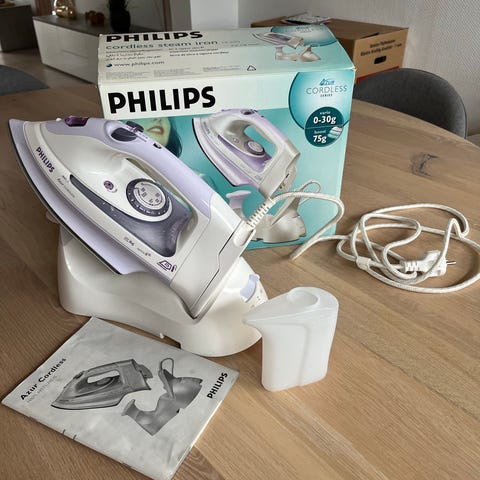 Strygejern blå og hvid