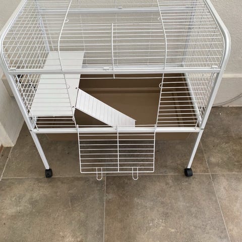 Gitteret til det store bur kan foldes sammen (Se billede) og ligges fladt ovenpå bunden.