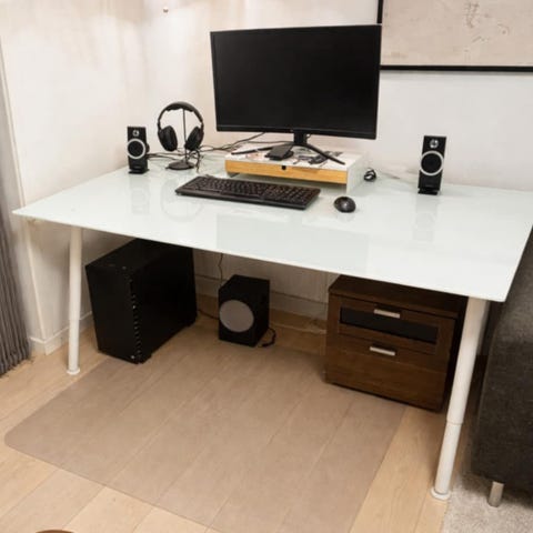 Glasskrivebord med metalkant