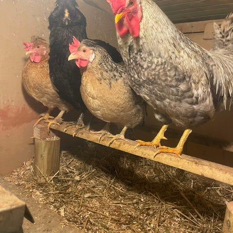 Rugeæg af Creme Legbar høner, og maran hane, maran krydsningshane og grønlægger hane (haner fra forskellige gårde hos Bergs Fairytalegarden).