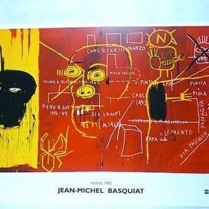En Jean-Michel Basquiat udstillingsplakat, offset litografi af høj kvalitet på tykt papir, Rom 2002.