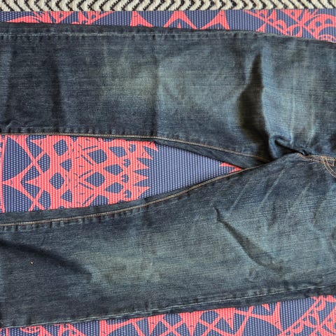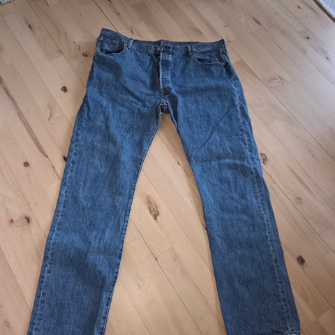 Levi's 501 jeans i blå denim. Bukserne har størrelse W30 i taljen og 32 i længden. Fremstillet i denimmateriale. Meget lidt brugte.