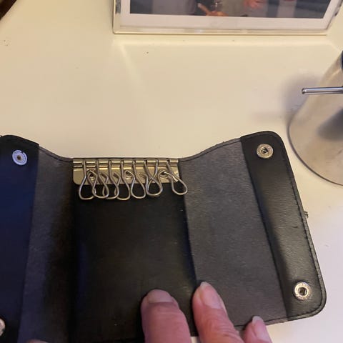 Flot keyhanger med lille pung / kortholder i brun med guld.