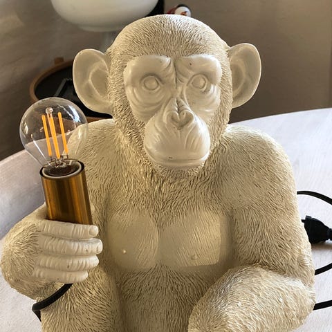 Abe lampe ink pære og skærm. Sjov lampe. Købt den i brugskunst butik. 50 cm høj.