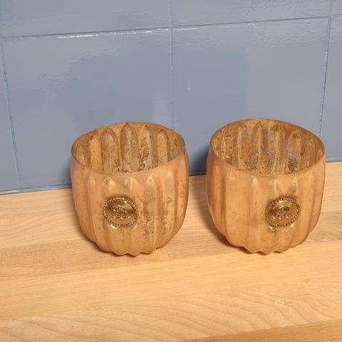 2 Lene Bjerre fyrfadslysestager ø 10 cm h 9.5 cm 80 kr for begge