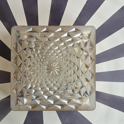 Lille plafond til væg eller loft med champagne farvet glas og guldfarvet ophæng.