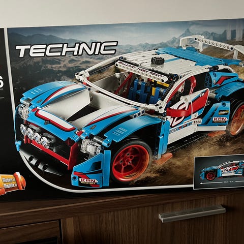 Med kasse og manualer. Sættet er ikke 100 procent komplet men det er småting der mangler. Læg mærke til klistermærket på æsken.