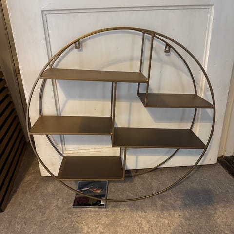 En af de fine cirkel reoler med 4 træhylder i forskellig størrelse. Til dekorative ting og sager : )