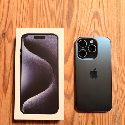Sælger min iPhone 15 Pro i den flotte Blue Titanium farve. Telefonen har den store 256 GB hukommelse, så der er masser af plads.
