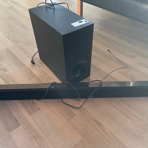 Sony HT-SF200 soundbar. Sort farve. Kompakt og med indbygget subwoofer. Perfekt til et mindre fjernsyn.