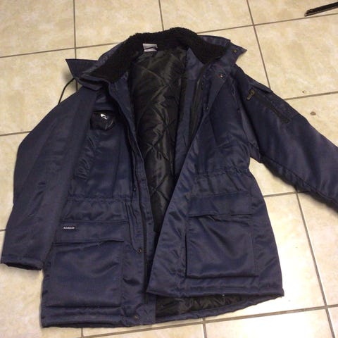 Canada Weather Gear herrejakke i størrelse M og farven hvid. Jakken har flere lommer med lynlås og knapper, samt en hætte. Materialet og designet er egnet til temperaturer mellem -20°C og 15°C, hvilket gør den velegnet til koldt vejr.