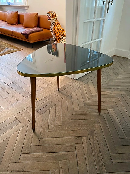 Mokka-farvede plader og med sort stel. Kan klappes helt sammen så den næsten ikke fylder noget.