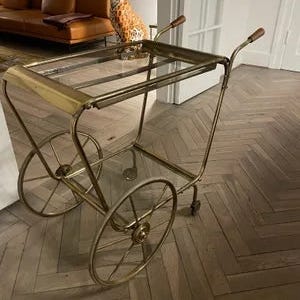 Virkelig lækker gammel fransk barvogn udført i messing med 2 glasplader, med det særprægede 8-kantede aflange glas.