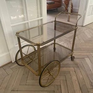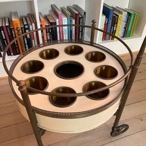 En meget speciel messing barvogn fra 1950'ere udført i det smukkeste patinerede messing og med en meget elegant og speciel konstruktion i stellet.
