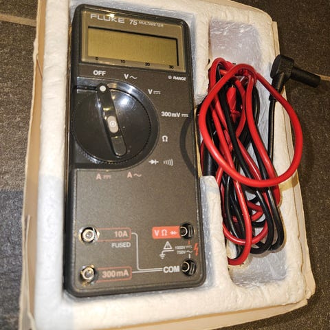 Fluke T5-600 elektrisk tangmeter med taske og manual. Måler elektriske strømme og spændinger, velegnet til elektriske installationer og fejlfinding.