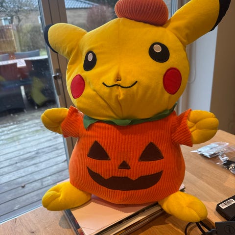 Denne plys bamse er en sjælden samlerobjekt fra Pokémon Centeret. Denne unikke plysdukke viser Pikachu med nissehuse og julegave på hovedet (som ligner Charjabug) perfekt til julegaven og er dejlig blød.