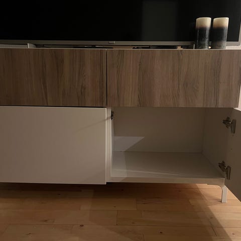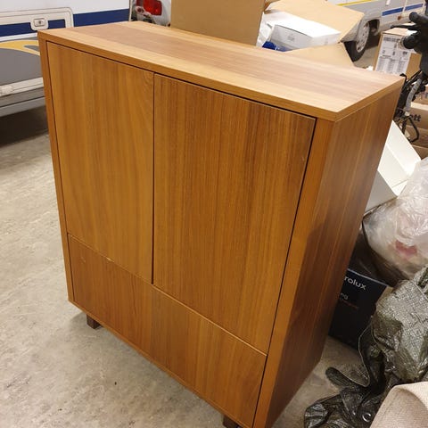 Skabet er ligesom delt i 2, i den forstand at det kan åbnes til hver side - fungerer derfor godt til kontorer.