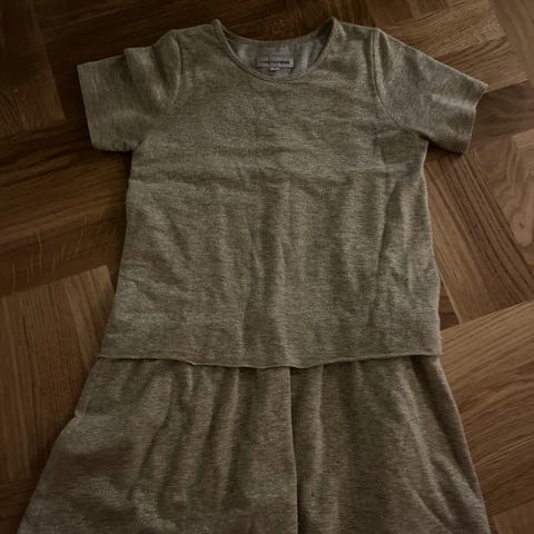 Flot kjole med glitrende overdel, lange ærmer og tylskørt. Søde detaljer med sløjfe foran og kryds på ryggen.