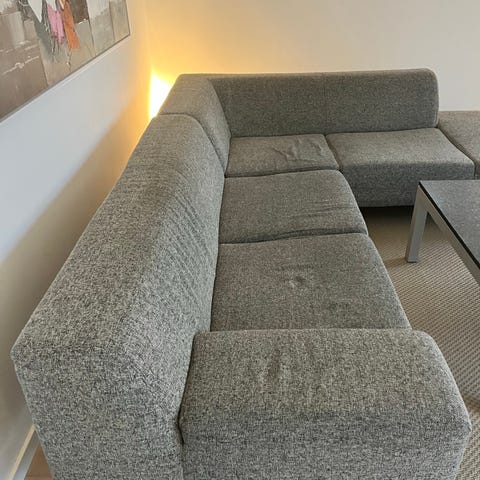 Sofaen er både stilren og behagelig, og den har god siddekomfort. Sofaen er fra et røg- og dyrefrit hjem. Farven på sofaen er lysegrå.