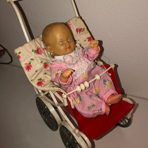 2 banan barnevogne med sengetøj og skildpadde dukke pr stk
